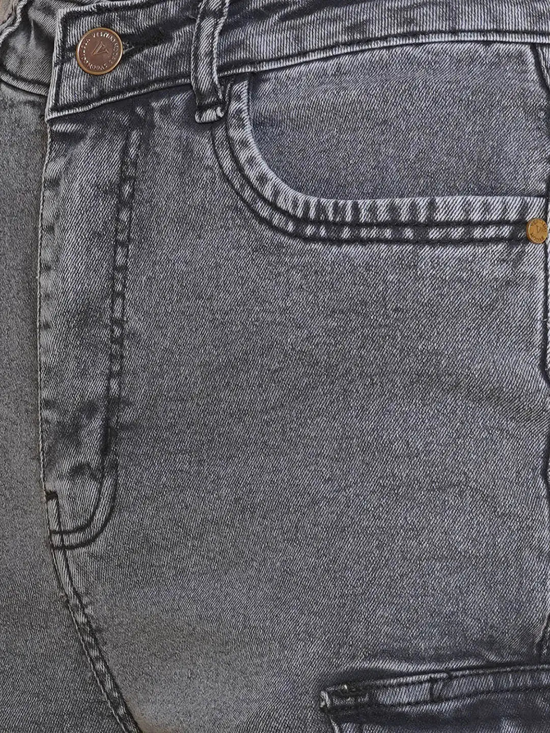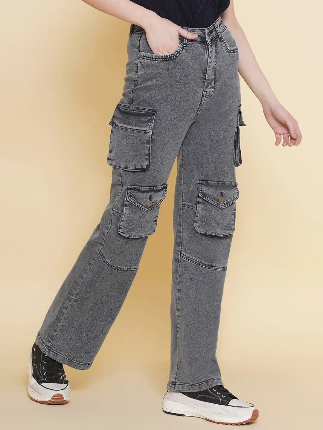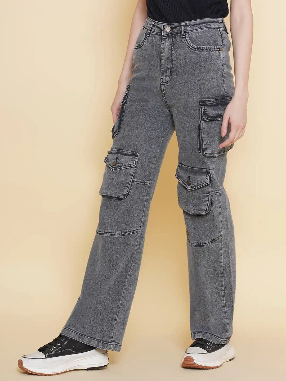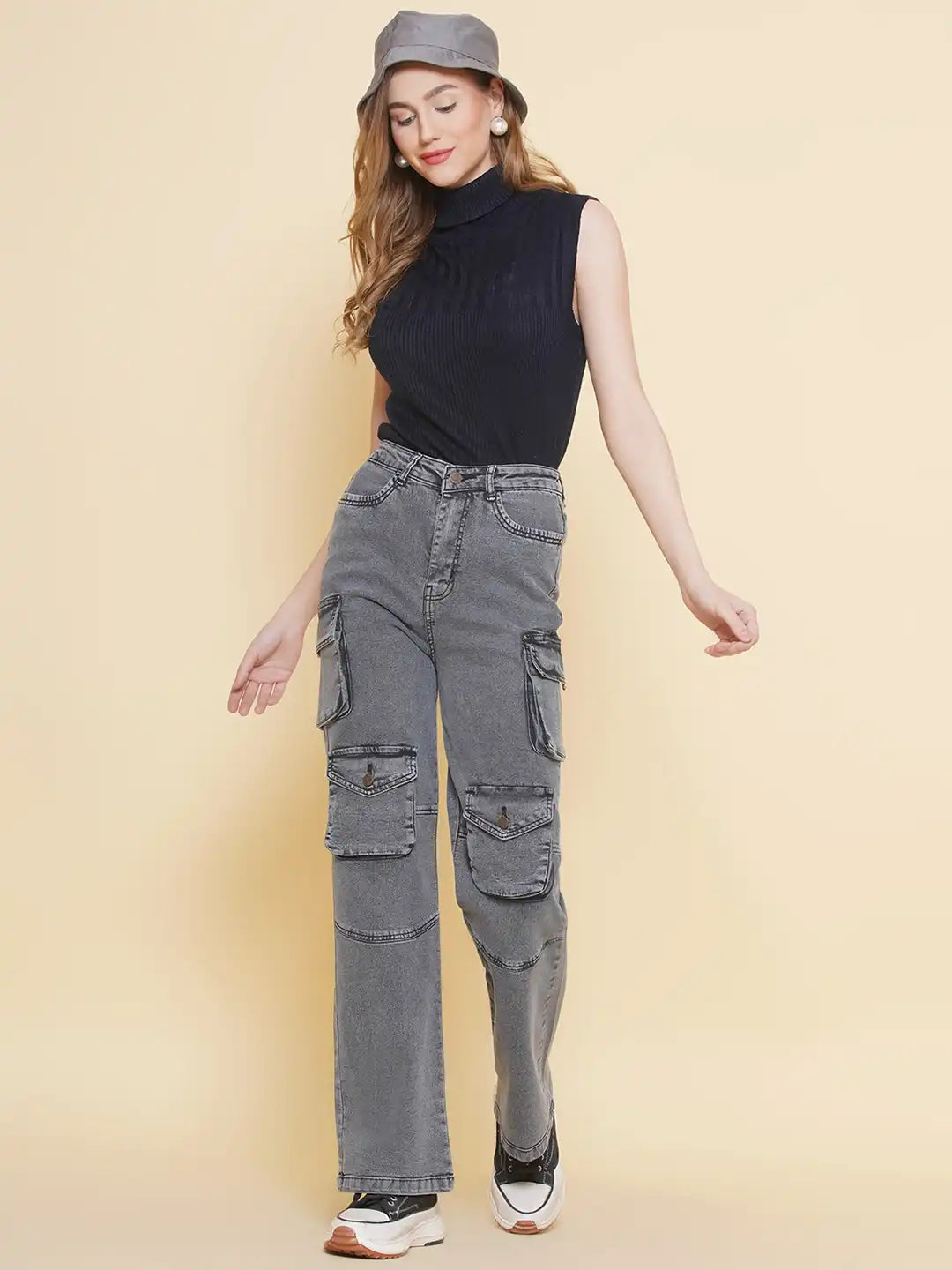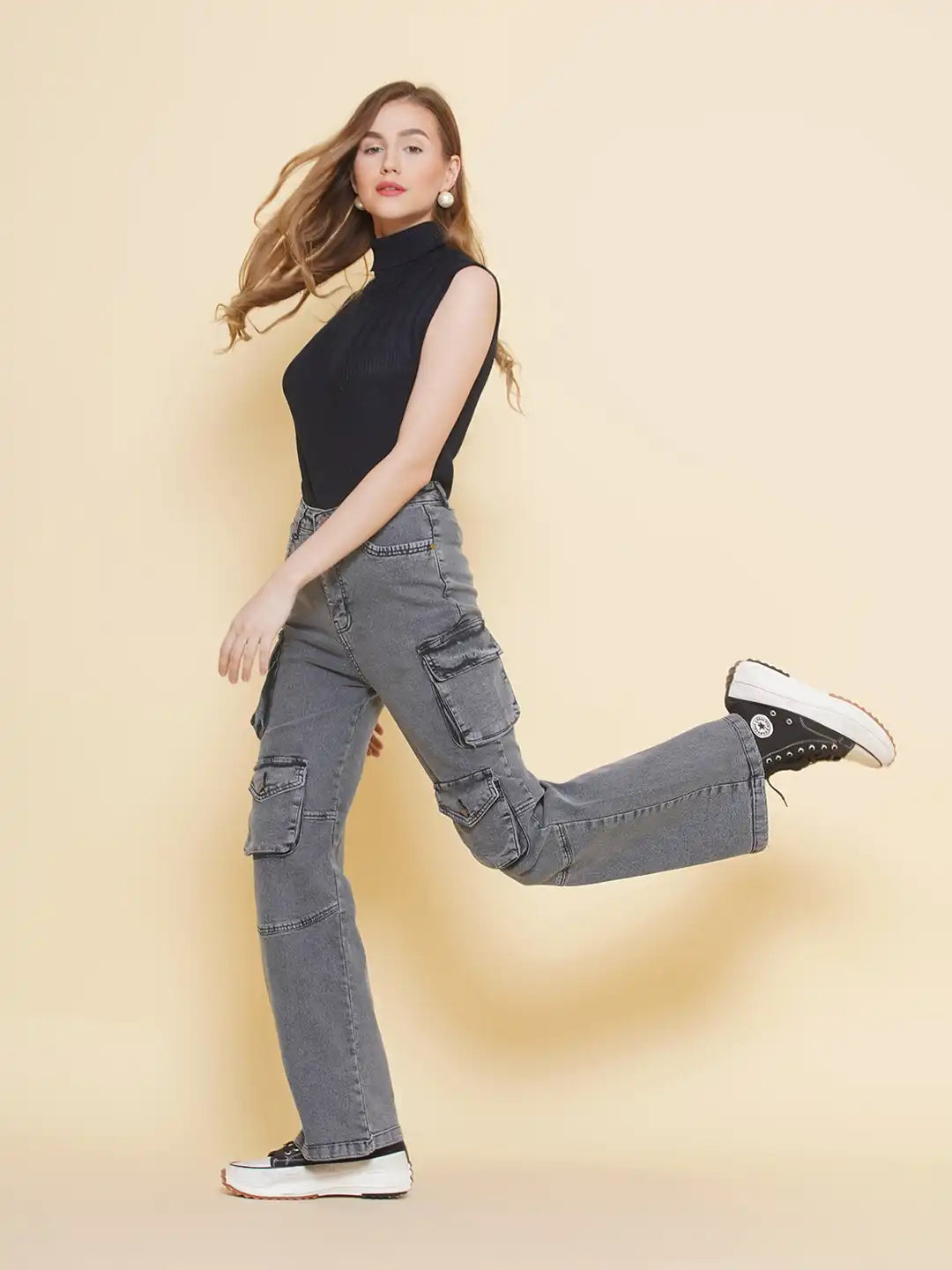 Vestido Modas Grey High Waist Multi Pockets Cargo Jeans
