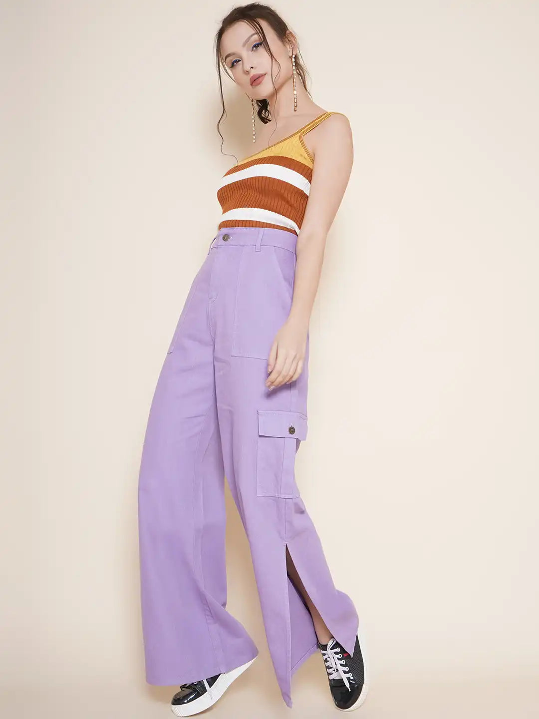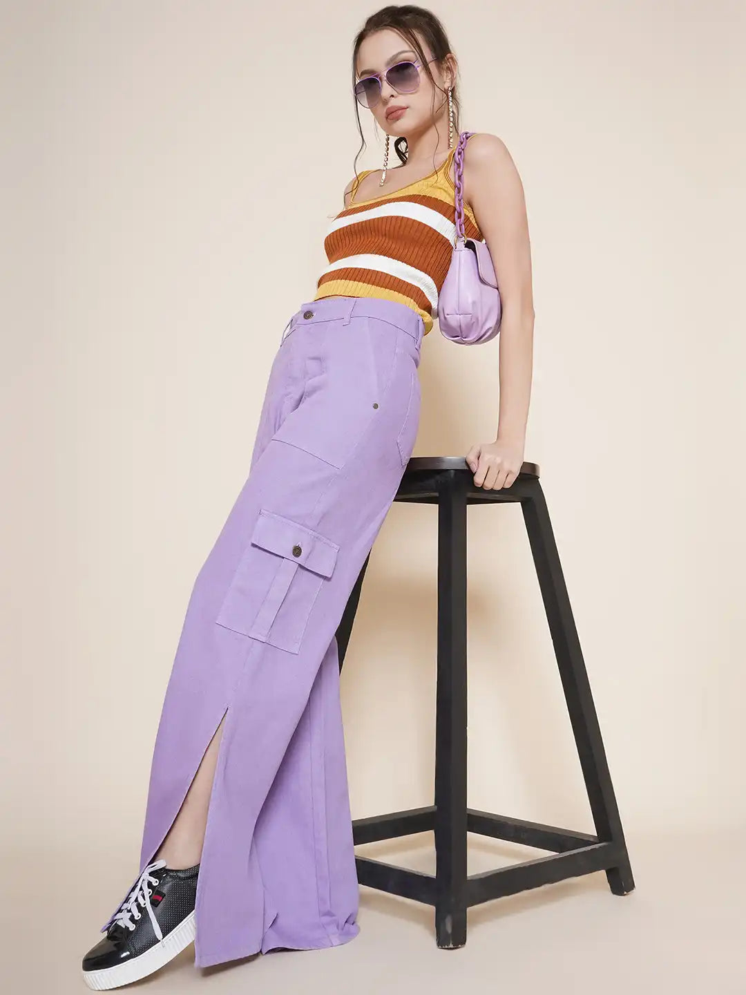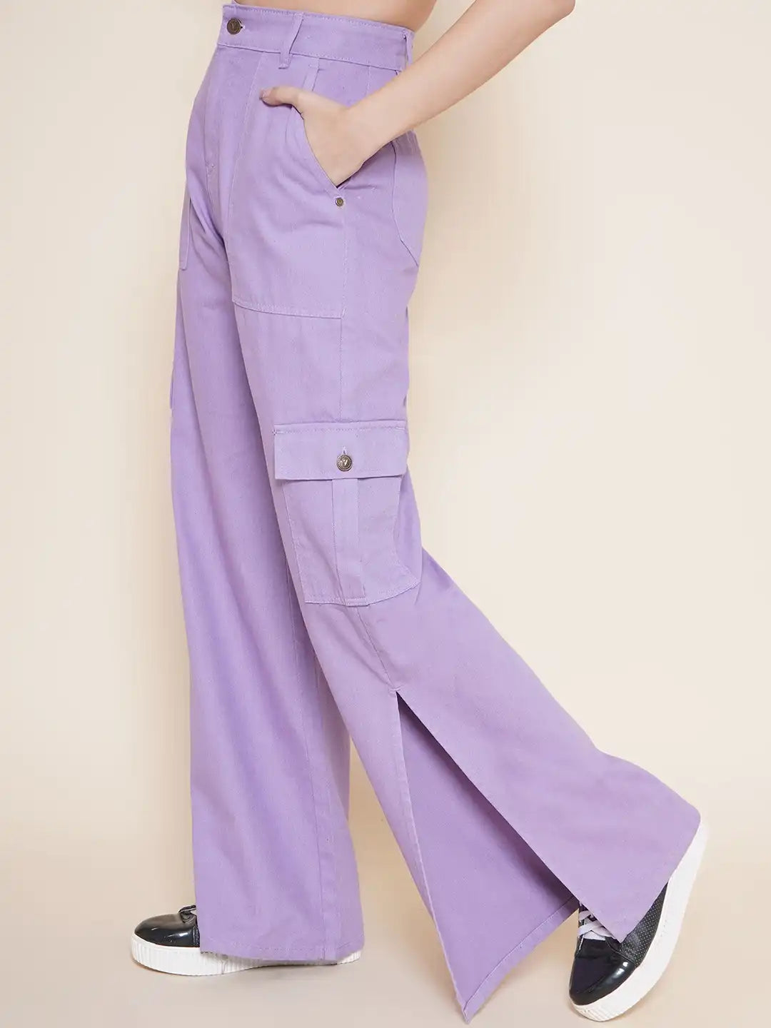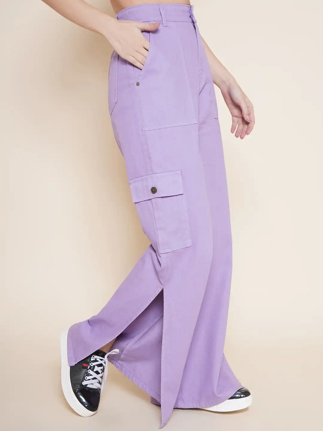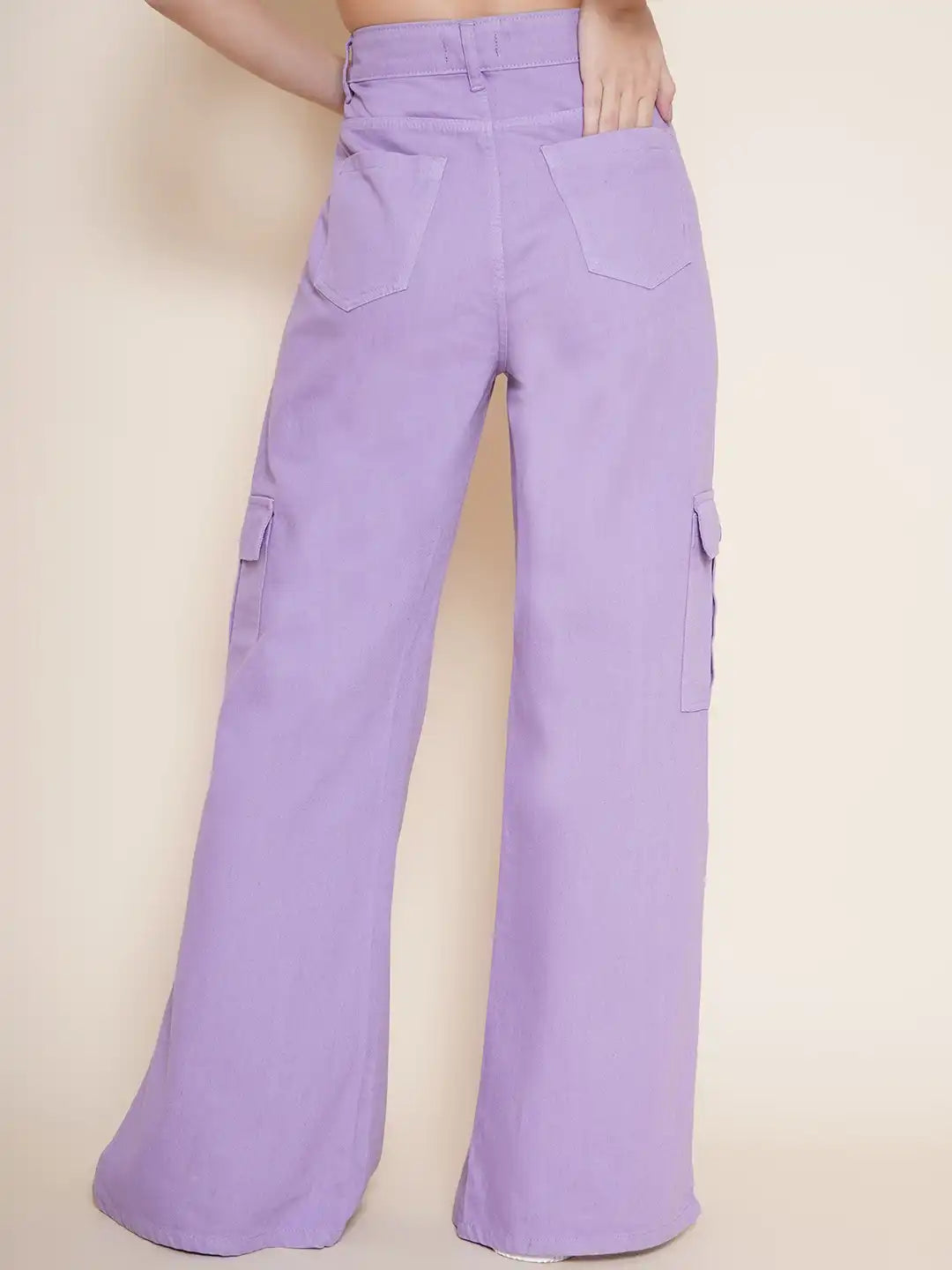 Look stylish with lavender Cargo style Jeans - Patchwork Jeans...