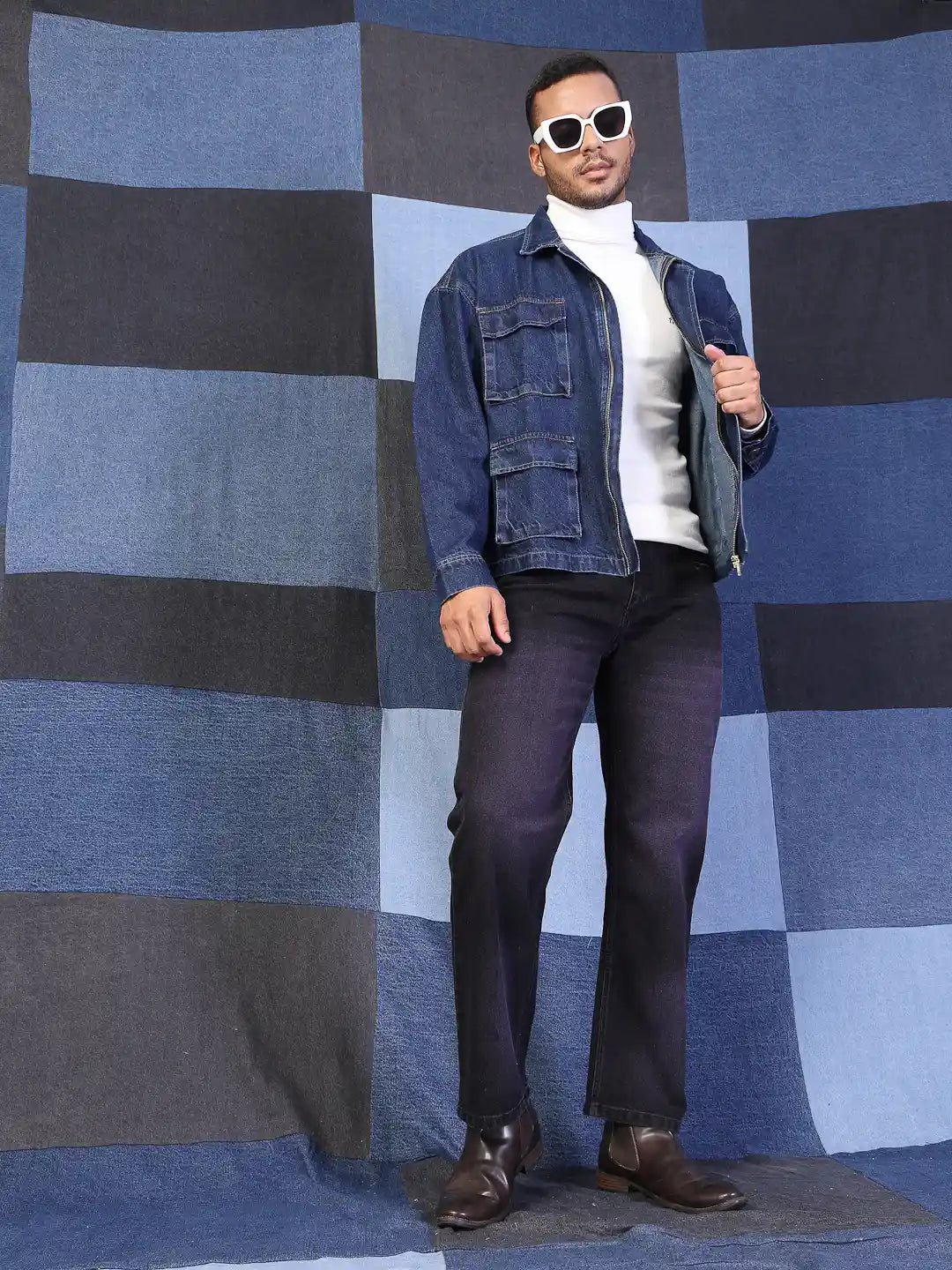 Vestido Modas Men Blue Denim Cargo Utility Oversized Jacket