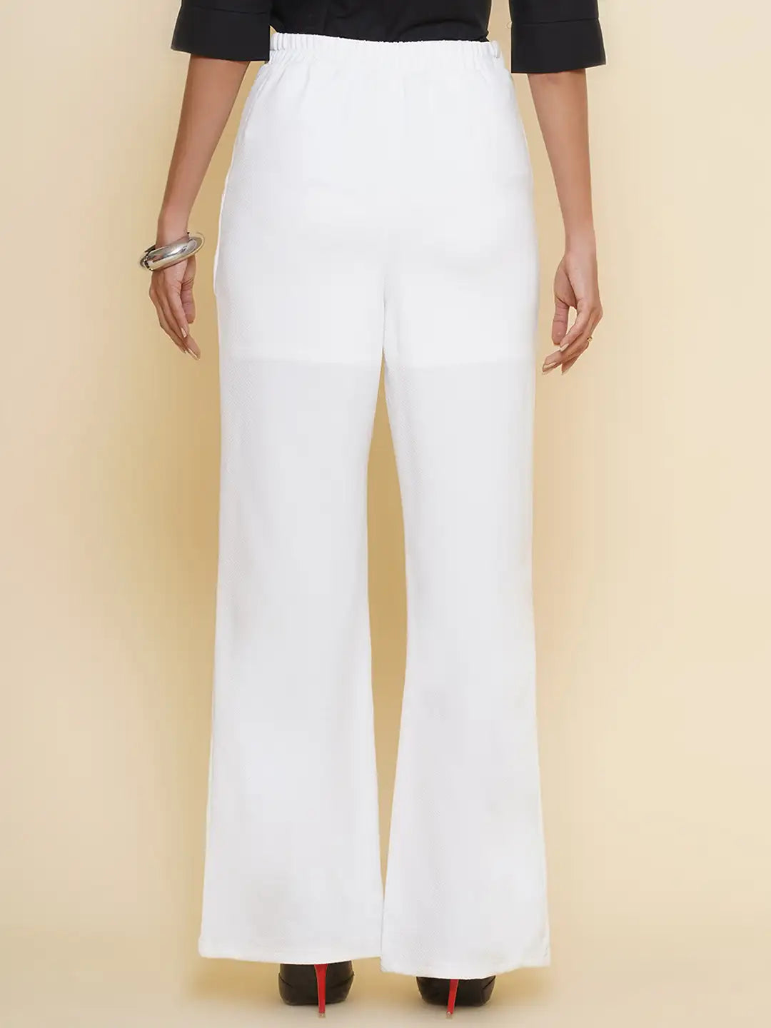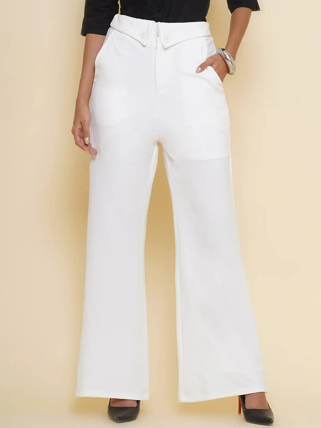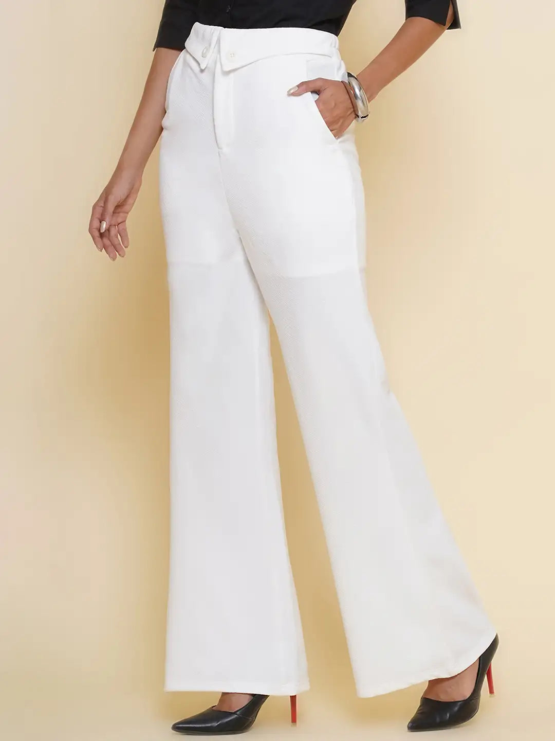 White Flap Waist Bell Bottom Pants, In Kareera Fabric, Polyester...